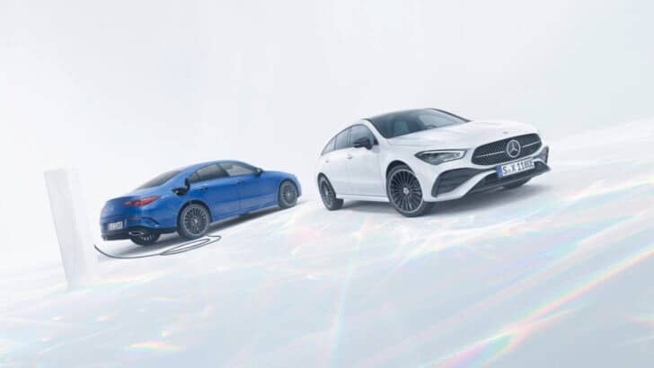 Mercedes-Benz CLA 250 e і CLA 250 e Shooting Brake – це гібриди, що заряджаються. Вони оснащуються 1,3-літровим турбомотором потужністю 163 к. с. та електродвигуном на 109 к. с. Сумарна потужність гібридної силової установки складає 218 к. с., а номінальна ємність акумулятора – 15,6 кВт-год.