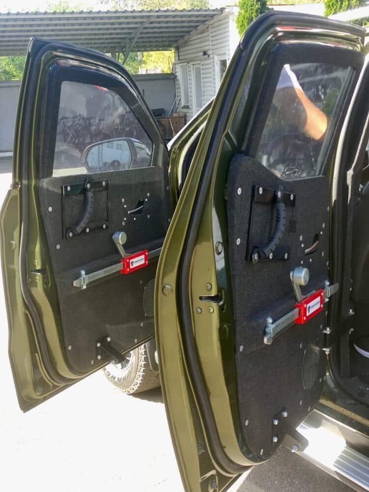 Кожна деталь була ретельно продумана. Броньовані двері мають запатентовані ригельні замки та надміцні петлі, здатні витримати їхню вагу. Додатковий шар балістичної сталі посилює місце з’єднання дверей з дверним отвором, що є найбільш вразливим місцем. Для екіпажу також інтегрований аварійний люк, що підкреслює важливість ретельного бронювання автомобіля.